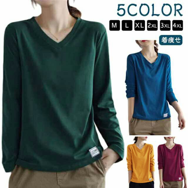 ロンT オフィス 長袖 トップス カジュアル ティシャツ Tシャツ シンプル レディース Vネック きれいめ 長袖tシャツ おしゃれ 無地 カットソー 重ね着 秋 秋服 ホワイト