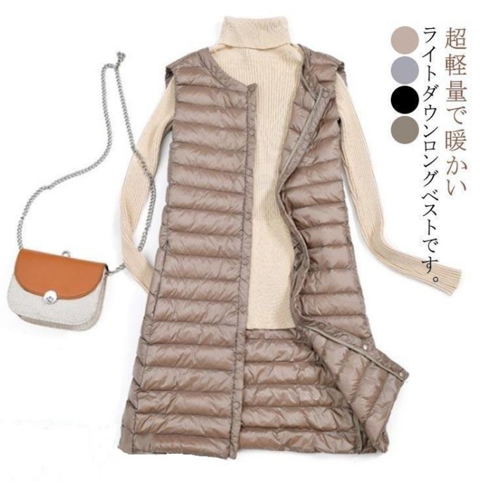 ダウンベスト レディース ロング丈 ジレ 秋冬 ロングベスト ジャケット アウター コンパクト 羽織り 防寒 トップス