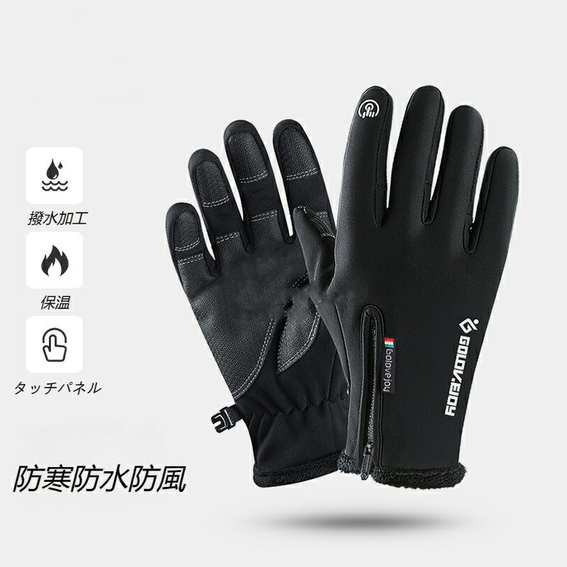 手袋 防寒 メンズ レディース グローブ ジッパー付き 着脱簡単 指開き S~XXL 防風 防水 撥水 裏起毛 裏フリース スマホ手袋 タッチパネル スキー スノボ バイク アウトドア 登山 自転車