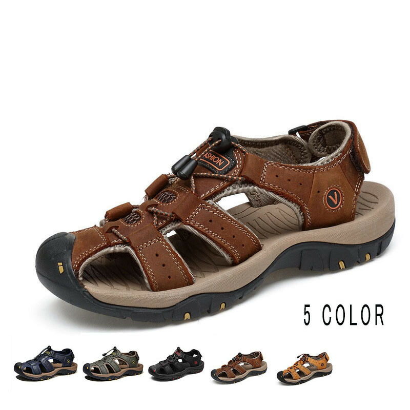 スポーツサンダル メンズ アウトドアサンダル 本革 厚底 つま先保護 マジックテープ メンズ靴 サンダル ビーチサンダル 快適靴