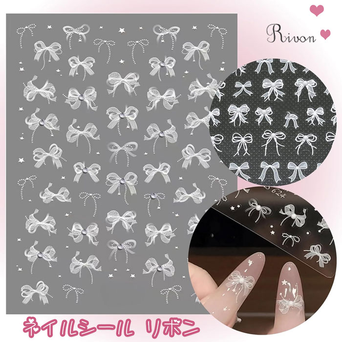 ネイルシール リボン 2枚セット 可愛い おしゃれ 蝶結び 3d立体感 ネイルパーツ シール 透明 貼るだけ リボンネイル 簡単なネイル かわいい 韓国ネイル