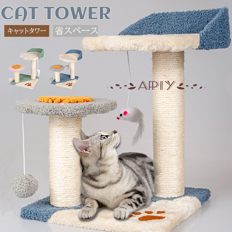 キャットタワー 天然サイザル麻 猫タワー かわいい ハウス おもちゃ 安定 小型 ストレス解消 ネコタワー キャットランド ミニ 小型猫用 爪とぎ 子猫 昼 可愛い