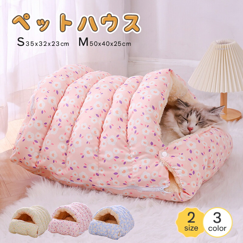 猫 犬ペットハウス 冬 猫用ベッド ドーム型 室内用 寝袋 ペット用品 ペットベッド 寒さ対策 柔らか キャットハウス ペット小屋 猫用品 ペット用寝袋 保温防寒 取り外し可能 半密閉式