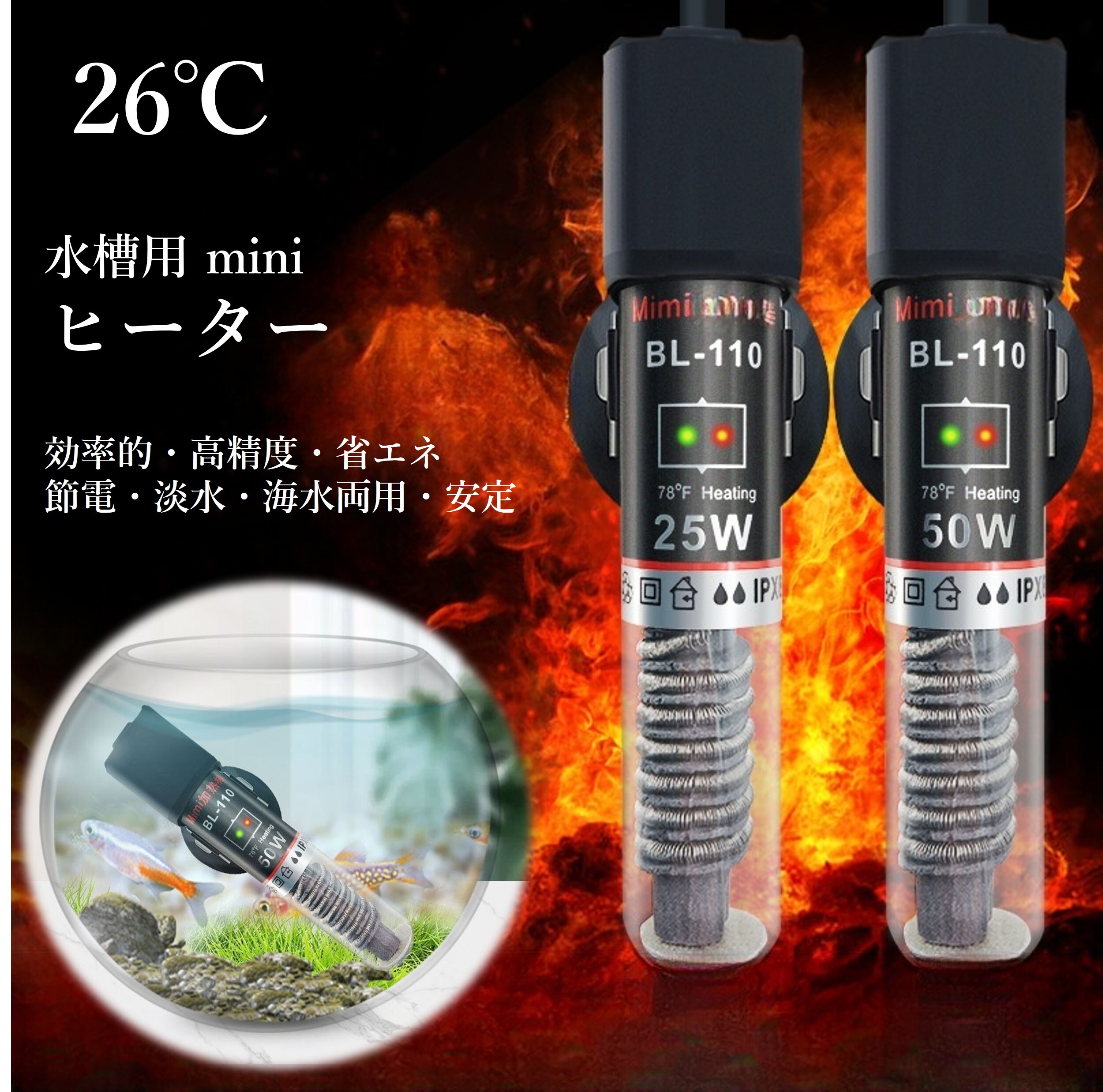 冬の水温管理もお任せ!自動恒温で快適な水槽環境を実現。過熱保護&空焼き防止機能付き、熱帯魚や亀にも最適な26℃設定ミニヒーター。