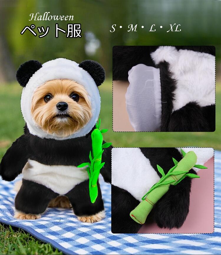 ペット服 ハロウィン コスプレ パンダ フード付き かぶりもの 着ぐるみ 可愛い 犬猫ハット ペット用コスプレ 着脱簡単 小中型犬 キュート ふわふわ ドッグウェア 着せ替え 変身グッズ パ 撮影道具
