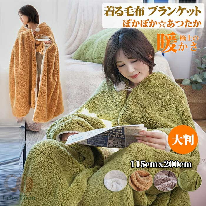 ポンチョ 大判 ブランケット ふわふわ 毛布 掛け毛布 ひざ掛 ボア 2枚合わせ毛布 着るブランケット 寝具 大きめ 115cmx200cm 厚手 ルームウェア あったか もこもこ ラン 肩掛け