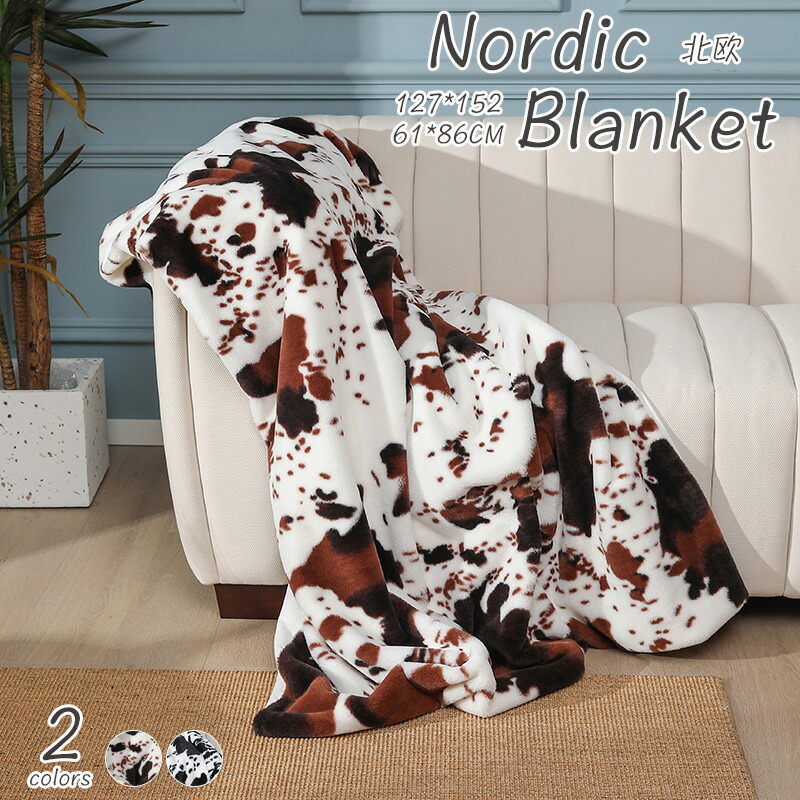 ブランケット 北欧 ふわふわ おしゃれ 大判 毛布 ひざ掛け 掛け毛布 もうふ 乳牛柄 牛柄 黒 厚手 大きめ ハーフケット ひざかけ あたたかい 車 ボア