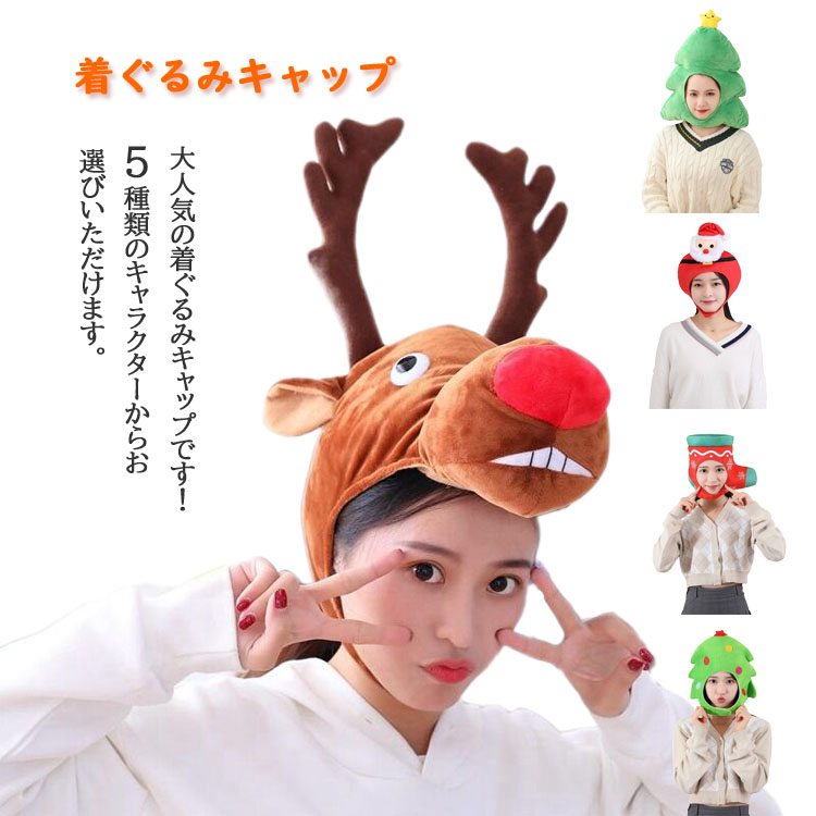 パーティー 着ぐるみキャップ アニマル帽子 トナカイ 動物 かわいい かぶりもの イベント グッズ コスプレ 変身 なりきり ふわふわ あったか 大人 着ぐるみ帽子 動物コスチューム 子ども