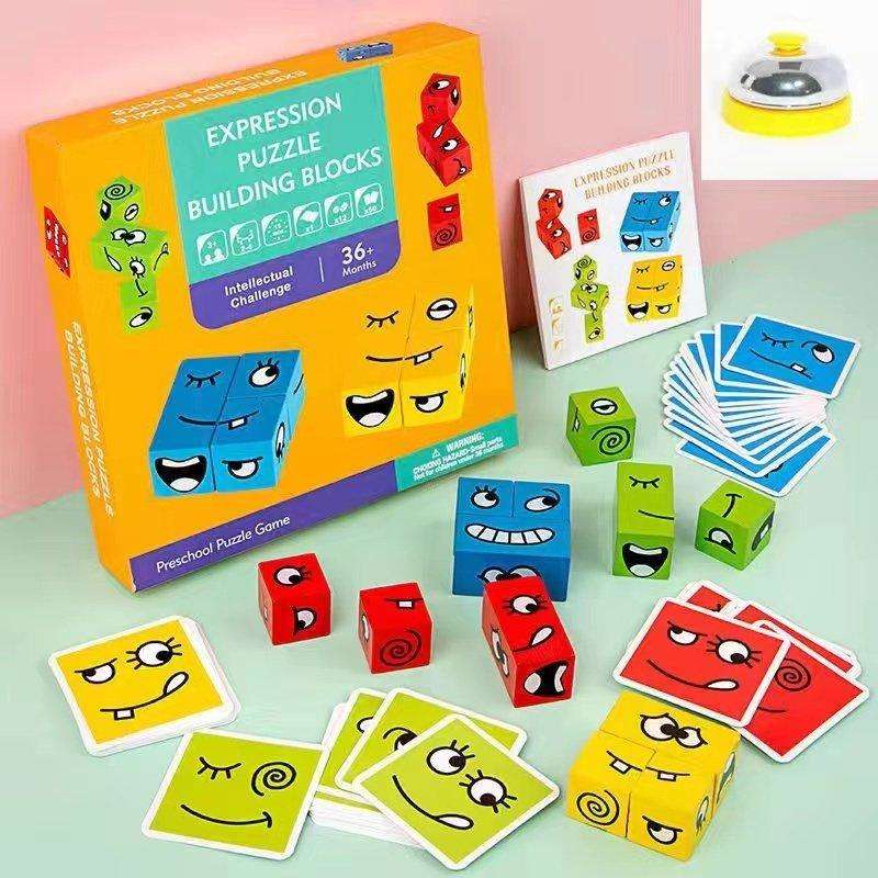 顔を変えるブロック 変顔マジックビルディングブロック カードゲーム 子供 6歳 木製ブロックパズル おもちゃ 贈り物 パズルビルディング