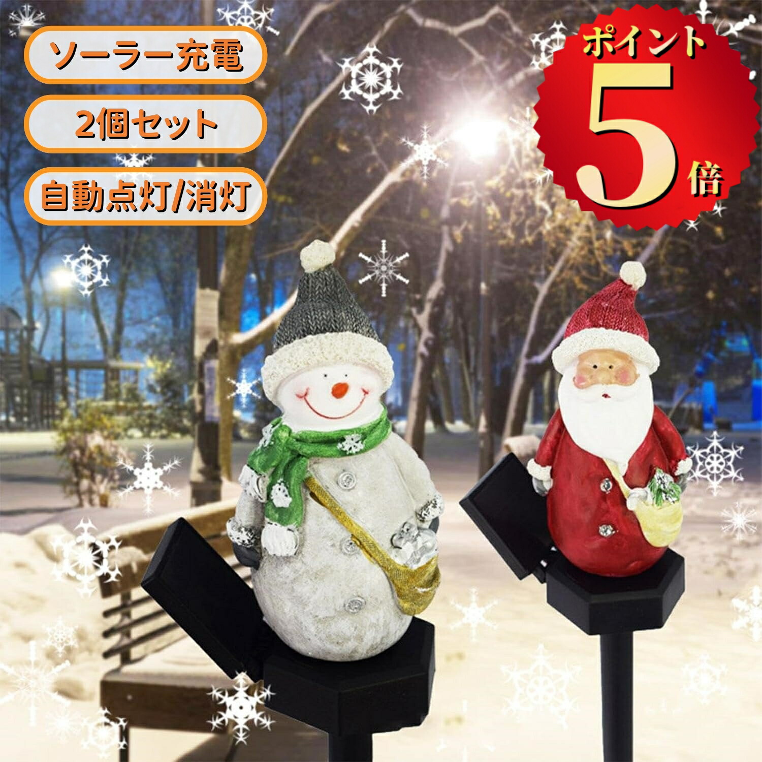 クリスマスライト サンタクロース 雪だるま ソーラー ガーデンライト 置物ライト ソーラー充電 自動点灯 防水 スノーマン ライト インテリア オブジェ クリスマス飾り 送料無料