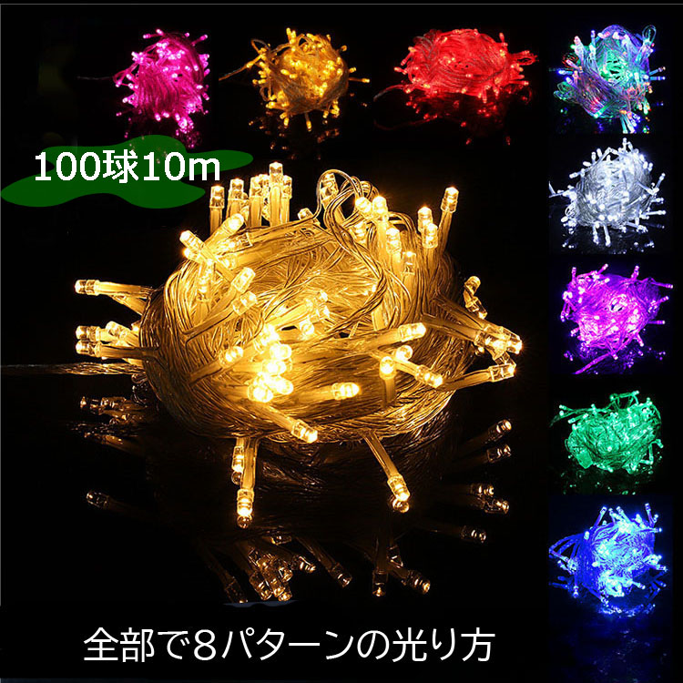 LEDイルミネーションライト 100球 10m コンセント式 コントローラー付 8パターン 点滅 点灯 防塵仕様 屋外 室内 屋内 ガーデンライト クリスマス ハロウィン飾り ストリングライト 正月