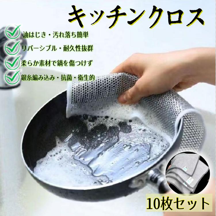 竹炭キッチンクロス 油はじき 簡単お手入れ 柔らか素材 銀糸抗菌 耐久性抜群 10枚セット 銀糸入り 両面使用 ふきん お手入れ簡単 ワイヤーふきん 耐熱 耐久性 繰り返し使用 防油