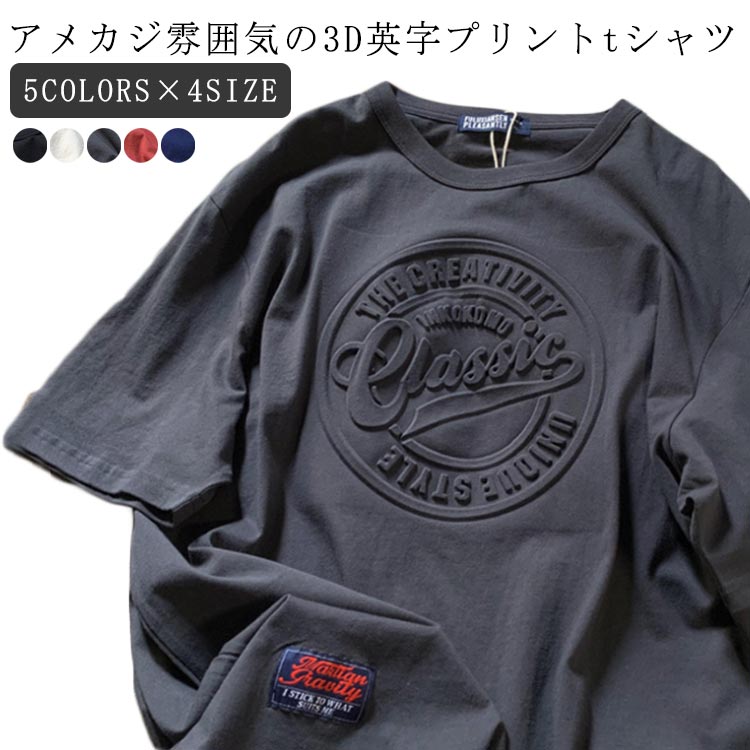 tシャツ メンズ ストリート 丸首 レディース 英字 3Dプリント 綿 レトロ ティーシャツ カットソー シンプル 半袖 黒 カジュアル 無地 トップス ワンポイント 大きいサイズ ブラッ アメリカン