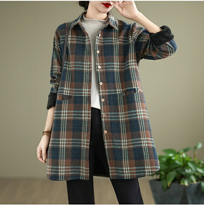チュニック ロングシャツ チェック 秋冬 暖か ジャケット アウター