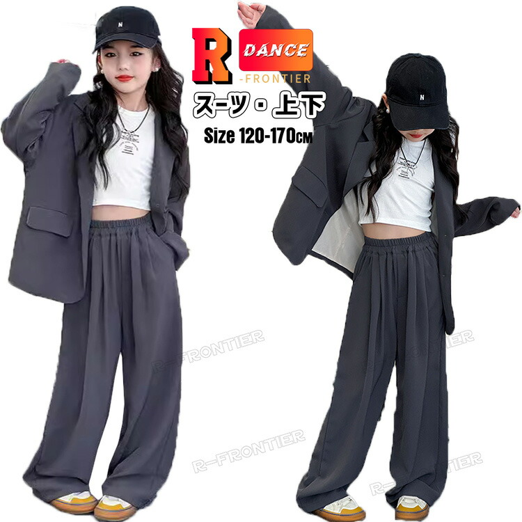 スーツ ダンス衣装 グレー k-pop 衣装 キッズダンス衣装 セットアップ ヒップホップ 韓国 ジャズ ダンススーツ キッズ トップス パンツスーツ ジャ ダンス