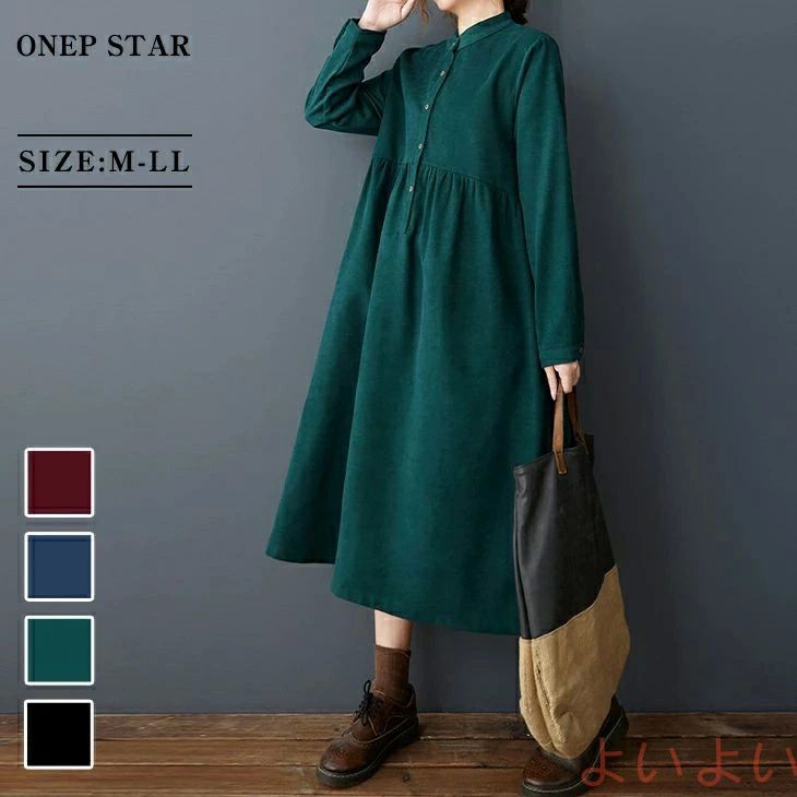 ラインワンピース ロング 長袖 大人フェミニン きれいめ 上品