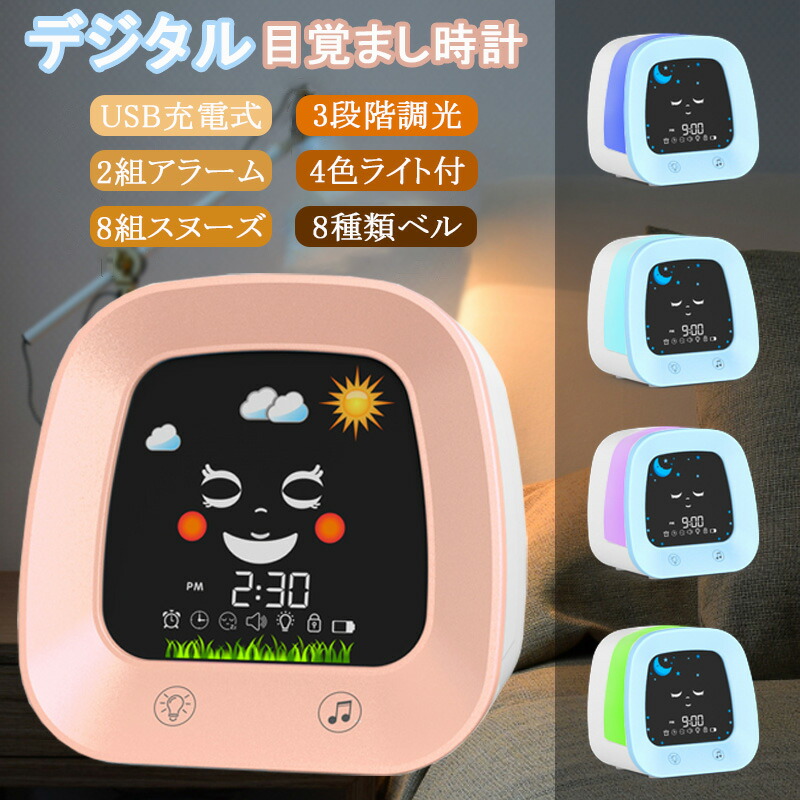 目覚まし 時計 優しい 音 目覚まし時計 デジタル かわいい 小型 大音量 子供 テレビ型目覚まし 可愛い 表情表示 子ども