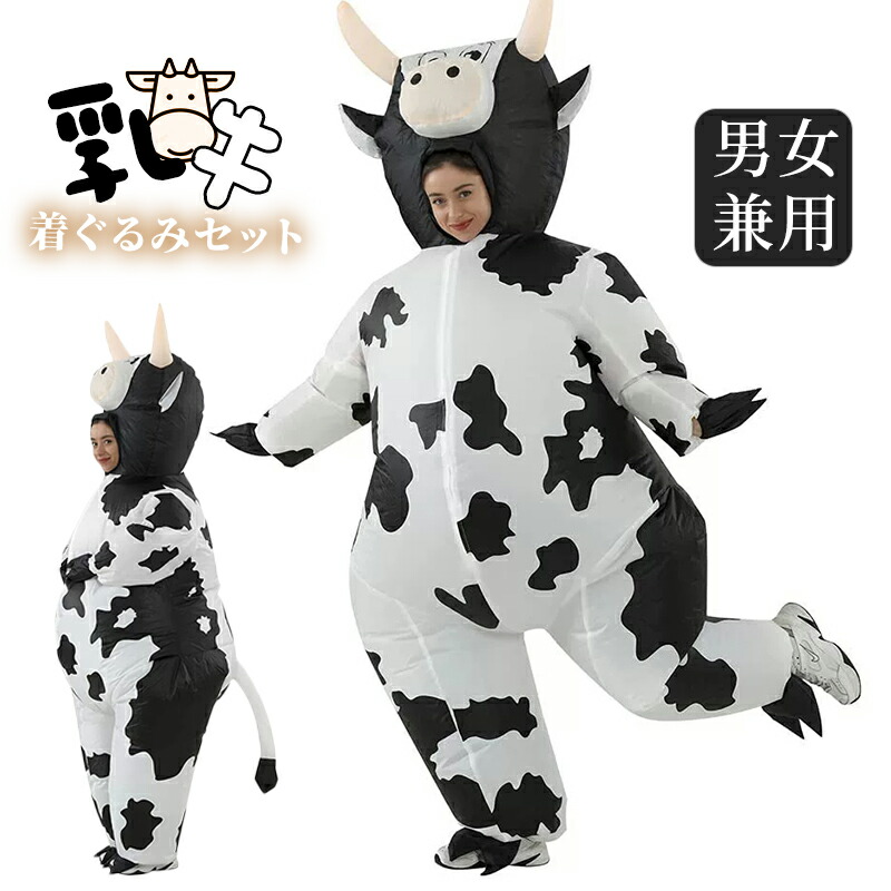 牛 コスプレ 着ぐるみセット コスチューム コスプレ服 牛姿 膨張式 空気充填 インフレータブル式 耐久 防水 軽量 男女兼用 大人用 仮装 パーティー 文化祭 学園祭 おもしろい イベント