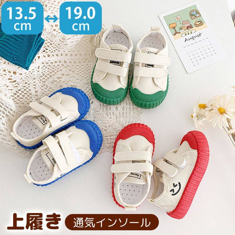 上履き 子供 上靴 マジックテープ 内履きズック ベビー キッズ ジュニア うわぐつ うわばき 男の子 女の子 子ども 洗える はきやすい 笑顔イラスト 入園 入学 春 夏 幼稚園 保育園 小学 室内