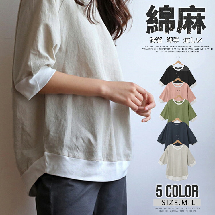 七分袖カットソー レディース ゆったり コットンリネン Tシャツ 7分袖 トップス 麻 ラグラン 7分 半端丈 綿麻 カットソー スリーブ ナチ プルオーバー