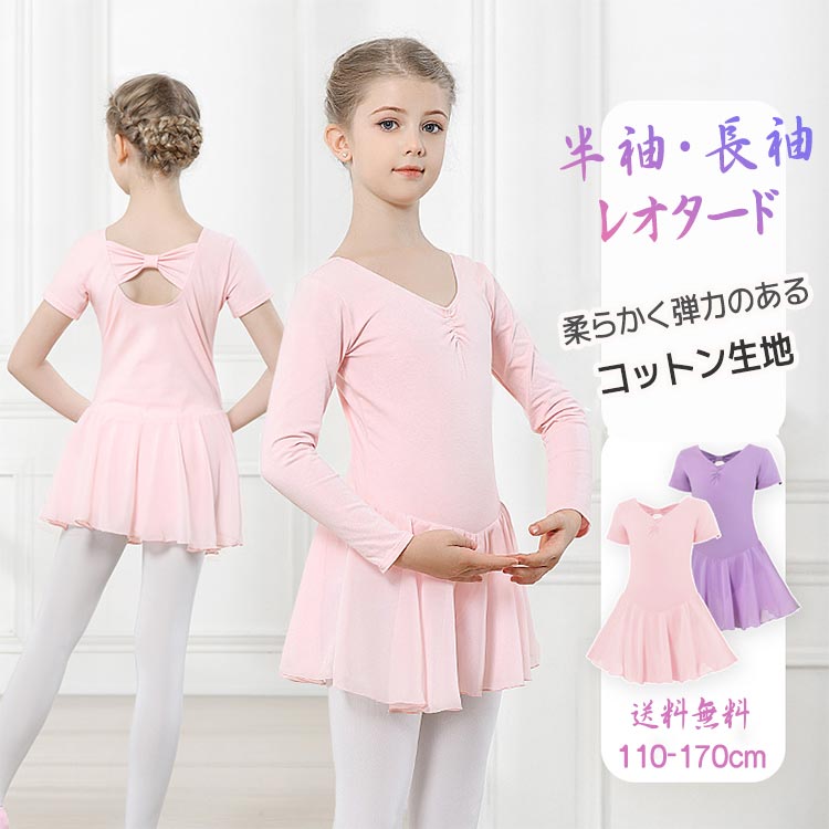 バレエ レオタード子供 スカート付き 長袖 半袖 子供 背中リボン キッズ ジュニア コットン 綿素材 動きやすい 通気 伸縮性 ストレッチ性 バレエレッスン用 練習用 練習着 発表会 バレエ用 体操