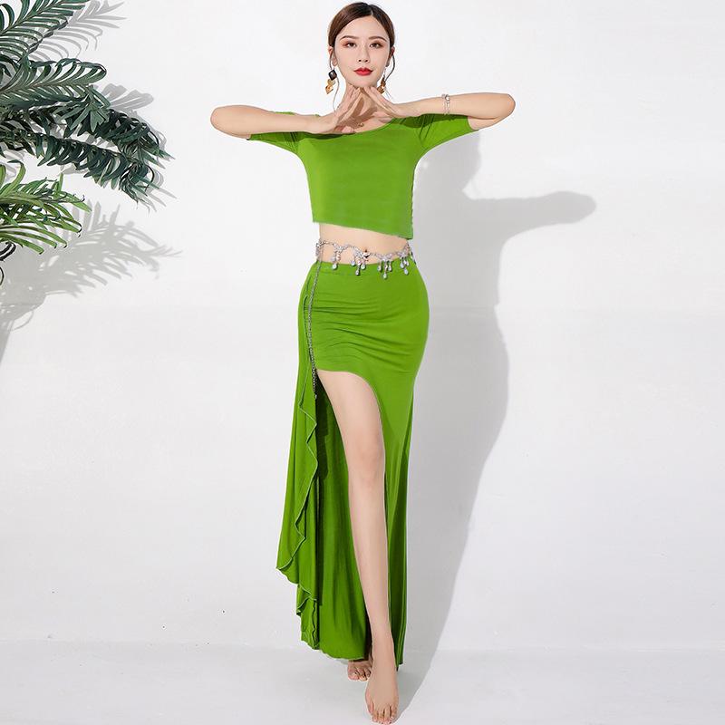 ダンス衣装 レディース 肚皮舞 レッスン着 上下セット モダール 練習着 セクシー ベリーダンス ウェア スカート 発表会 伸縮性 ストレッチ 全5色 ステージ衣装