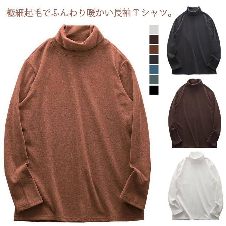 長袖tシャツ ハイネック メンズ 微起毛 トレーナー 秋 冬 服 無地 ストレッチ あったか 保温 インナー 下着 重ね着 暖か おしゃれ アウトドア 登山 釣り ゴルフ キャンプ