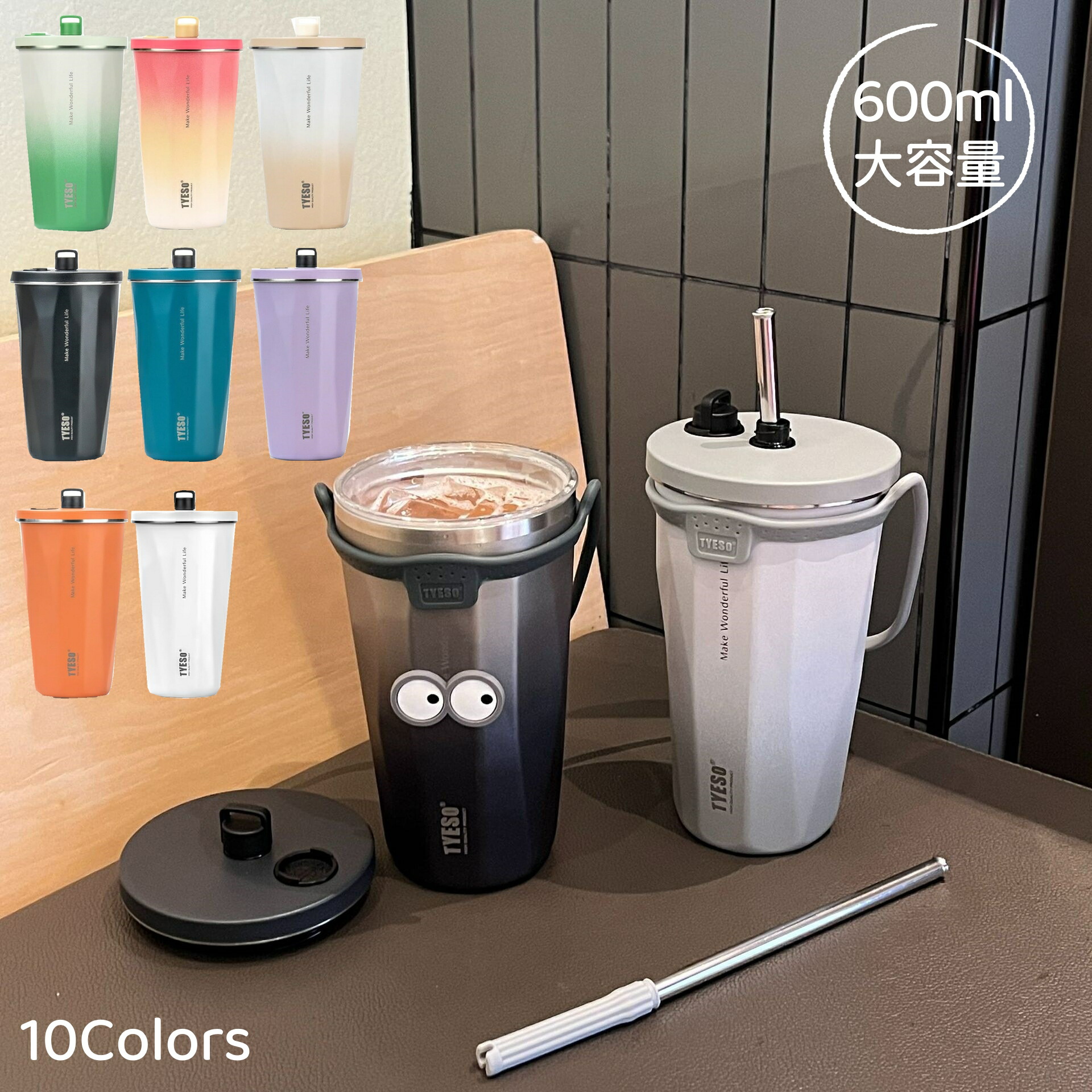 タンブラー 600 ふた付き 保温保冷 ストロー ステンレス ボトル 濡れない 結露しない ホワイト ブラック ブルー イエロー オレンジ グリーン パープル 母の日 クリスマス 誕生日
