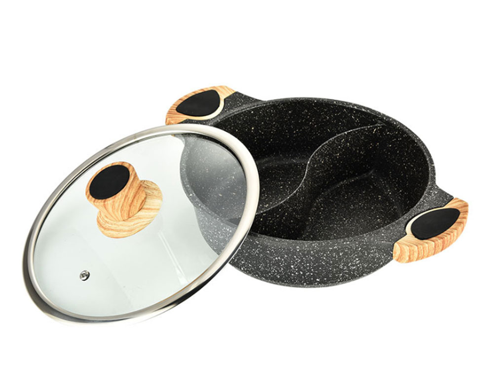仕切り付鍋 二食鍋 24cm 二つの味が楽しめる 両手 IH対応 しゃぶしゃぶ鍋 ガラス鍋蓋付 家庭 宴会用 卓上鍋
