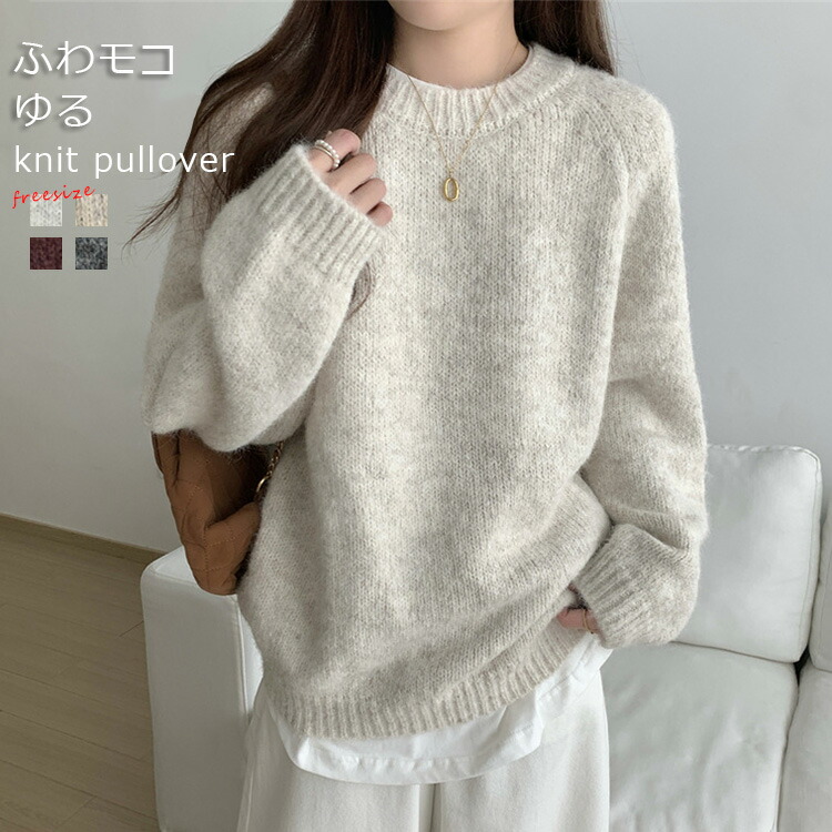 ニットセーター プルオーバー レディース 秋冬 ニットプルオーバー トップス ニット セーター クルーネック 長袖 秋 冬 春 ゆったり ラグラン袖 長そで 丸首 体型カバー 暖か 無 ラウンドネック