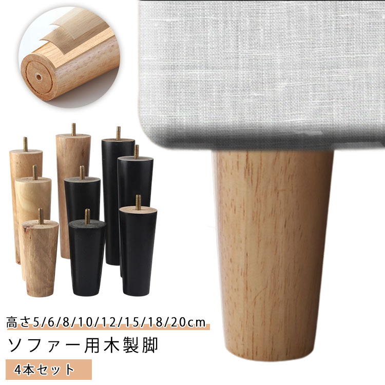 置き換え ソファー用木製脚 4本セット 木製脚 かさ上げ台 ソファ キャビネット足 脚 交換可能 継ぎ脚 継ぎ足 テーブル 家具脚 木製 ベッド 足の交換用 家具パーツ 高さ5 6 10 12 1 8
