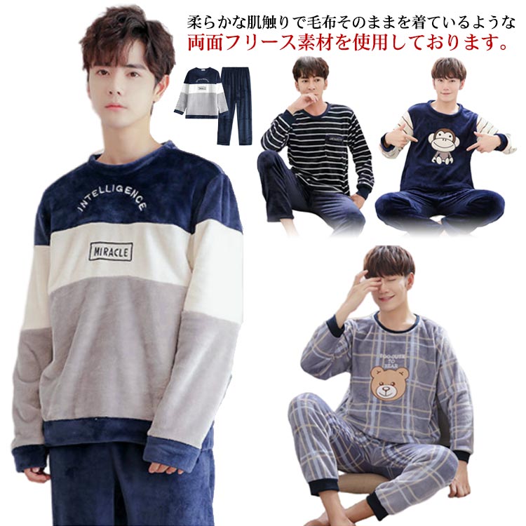 冬用 ルームウェア フランネル セットアップ 上下セット フリース 部屋着 長袖 寝巻き ゆったり 寝間着 厚手 あったか ふわふわ 暖かい メンズ もこもこ 着る毛布 ウエス パジャマ