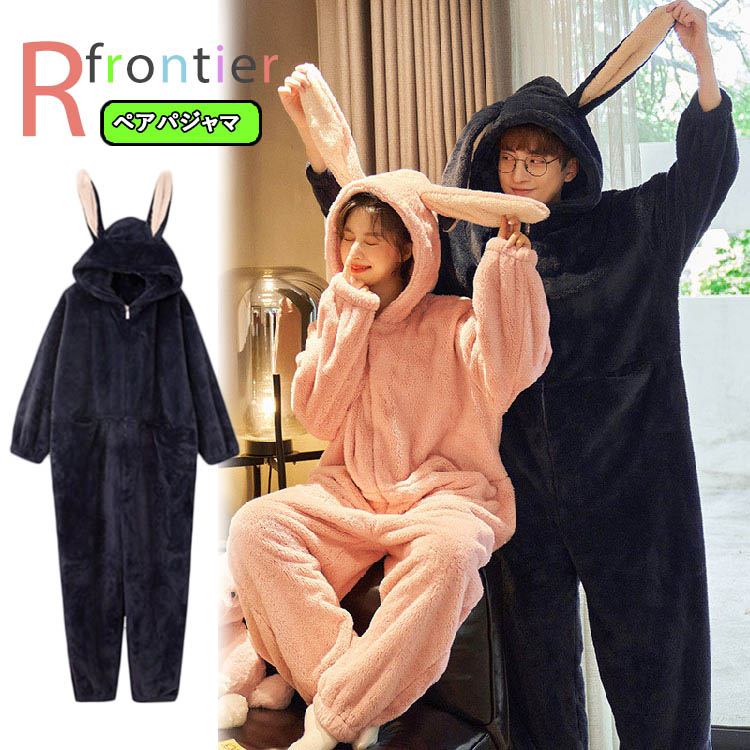 着ぐるみ パジャマ 大人用 兎耳付き 可愛い もこもこ ペア レディース メンズ 着る毛布 動物 ルームウェア ペアパジャマ かわいい オールインワン 修学旅行 高校生 部屋着 暖か 中学生