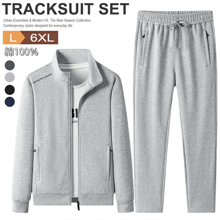 セットアップ メンズ 綿100% ジャージ スウェット 上下セット フルジップ ルームウェア 部屋着 スポーツウェア おしゃれ 長袖 スタンドカラー ジップアップ 春 秋 冬 ウォーキングトレーニング