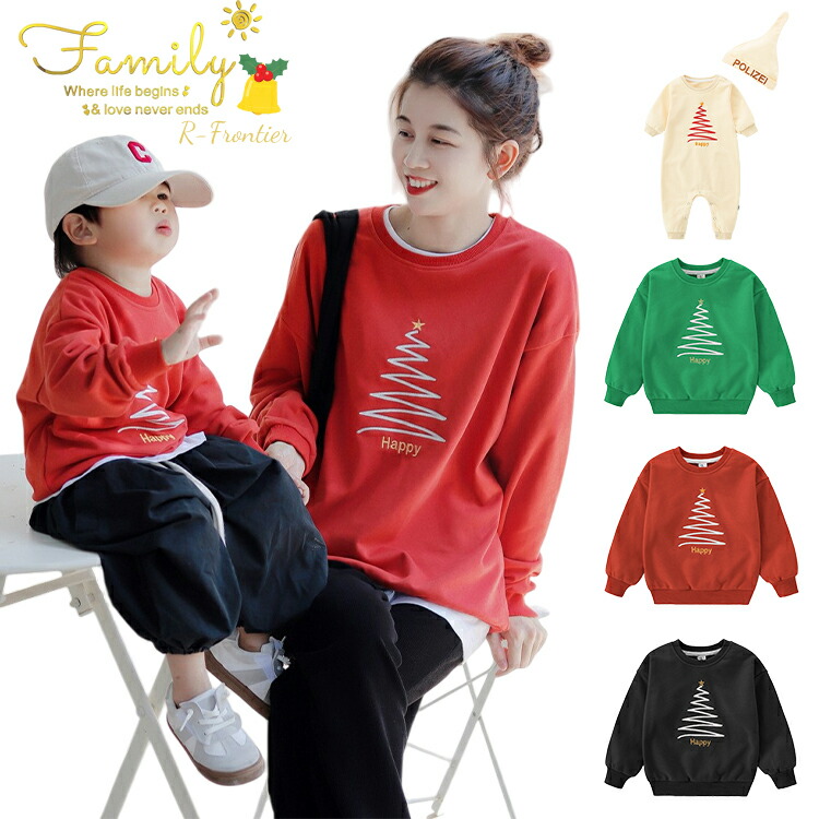 クリスマス 衣装 親子コーデ トレーナー クリスマスツリー 冬 秋 リンクコーデ 親子 セット 秋冬 ロンパース プレゼント ペアルック 赤ちゃん 大人 刺繍 こども服 裏起毛