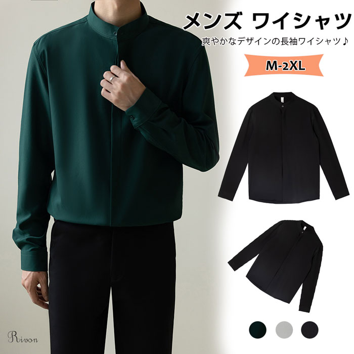 メンズ ワイシャツ 長袖 スタンドカラーシャツ 春 オシャレ ビジネス カジュアル 隠しバックル 大きいサイズ 通勤 通学 yシャツ 白 ブラック グリーン 結婚式