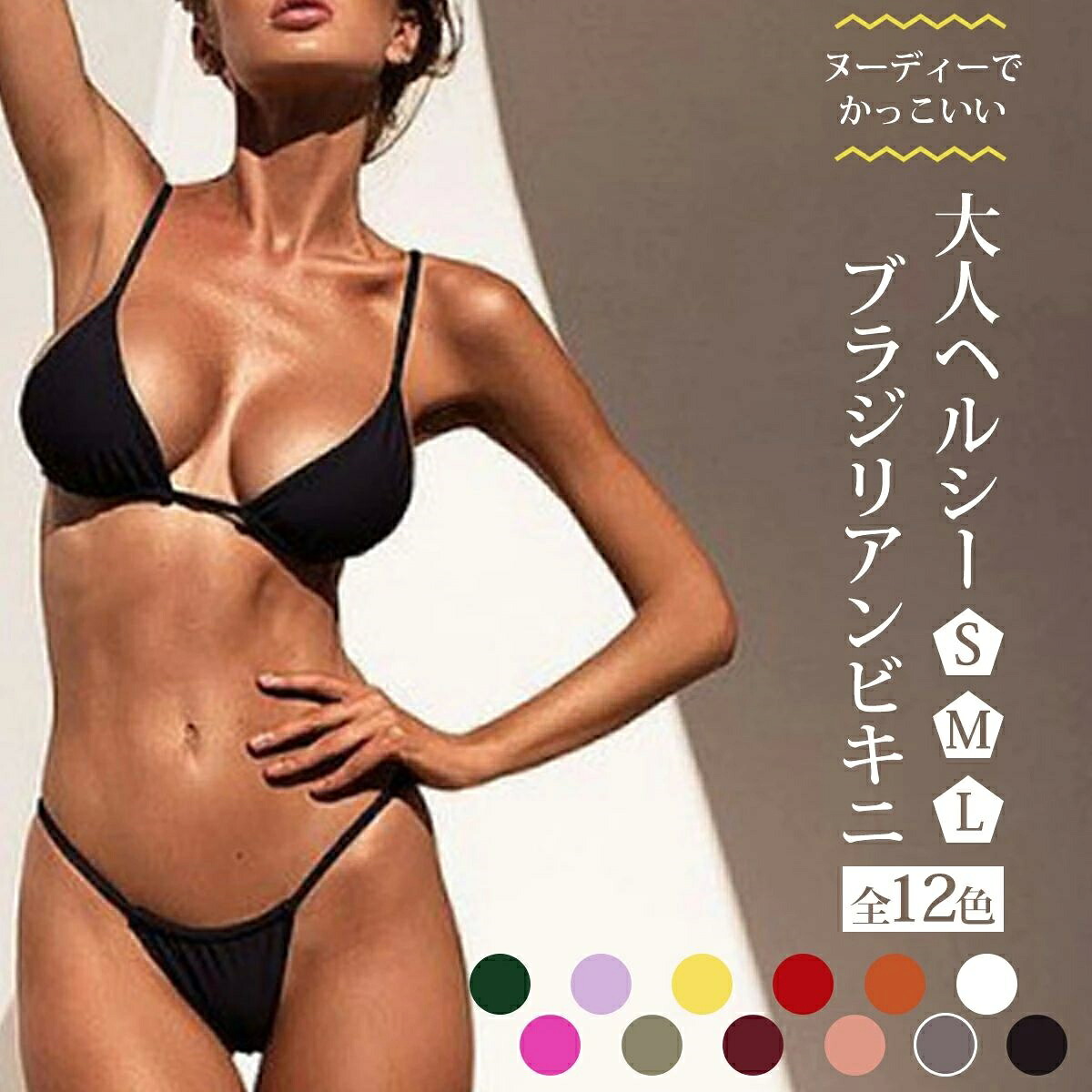 ブラジリアンビキニ マイクロビキニ レディース 水着 ビキニ ブラジリアン セクシー セット 紐ビキニ 三角 トライアングル Tバッグ 無地 女の子 かっこいい 海外 露出 白 黒 緑 紫 黄色 赤