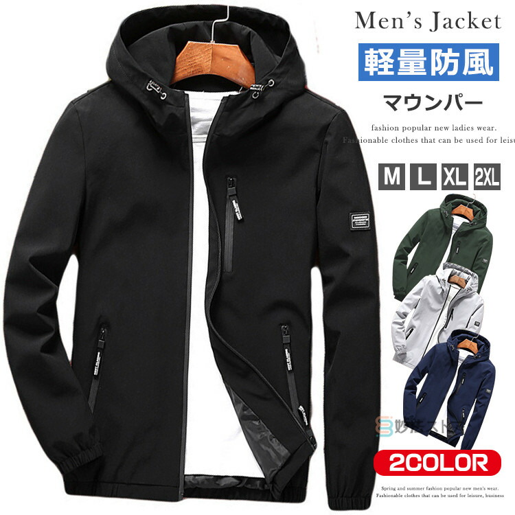 マウンテンパーカー メンズ マンパー ライトアウター フルジップ ジャケット 撥水 防風 フード取り外し不可