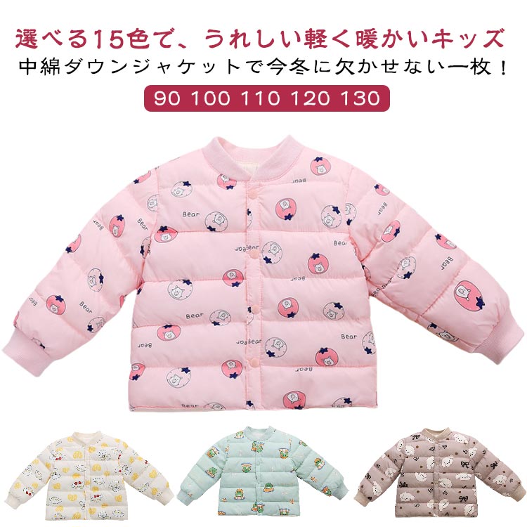 15タイプ選べる 軽量 保温 ダウンジャケット キッズ 中綿ジャケット ダウンコート ライトダウン 中綿 アウター ファイバーダウン 男の子 女の子 赤ちゃん ベビー 秋冬 フードなし かわいい 子供