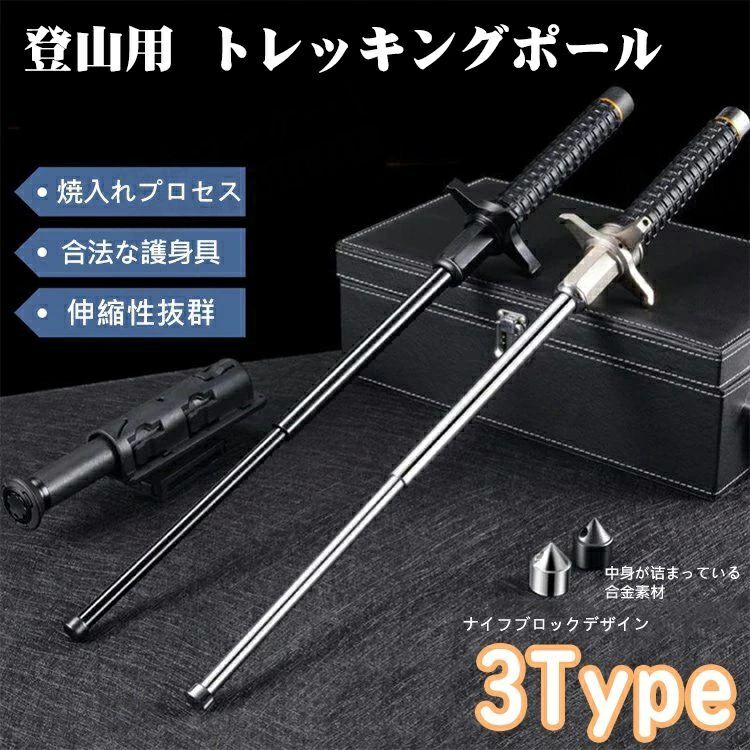 ストック 杖 伸縮 登山用 折りたたみ式 調整可能 ウォーキングポール 護身用 折り畳み アウトドア 登山 トレッキングポール