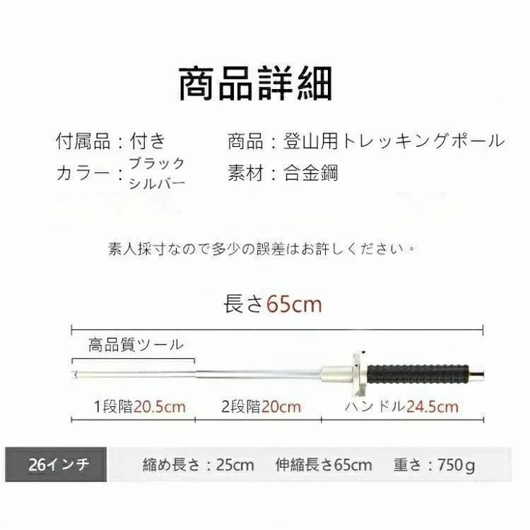 ストック 杖 伸縮 登山用 折りたたみ 登山 トレッキング トレッキングポール 特集 ブラック シルバー 26インチ67cm780g 32インチ79cm870g 36インチ102cm1050g 21インチ53cm650g