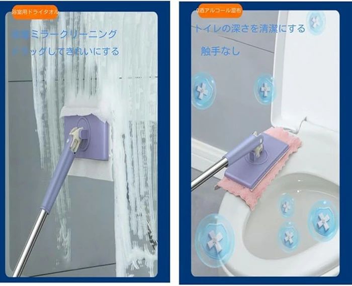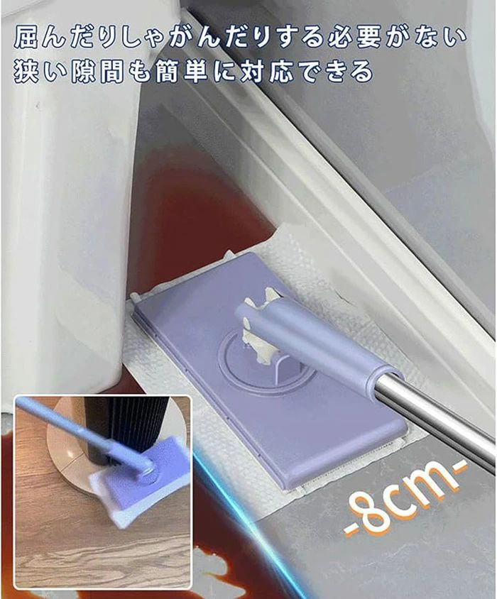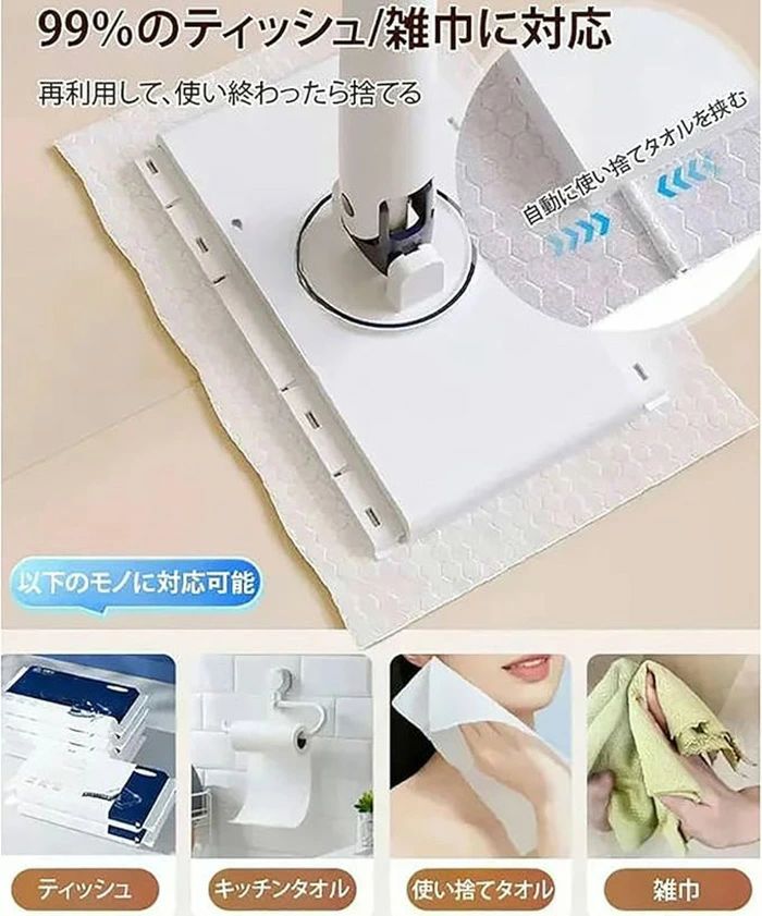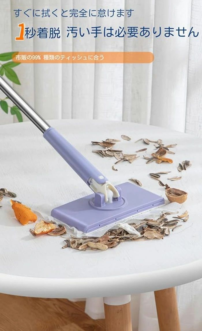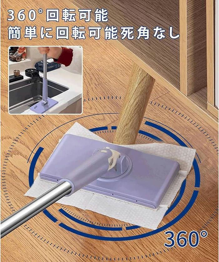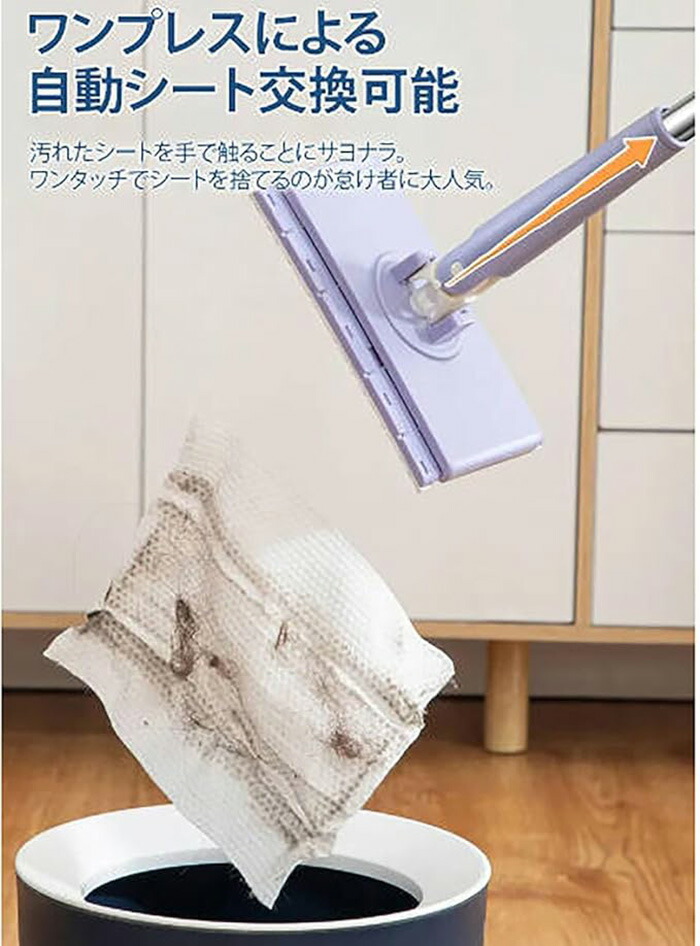 自動で雑巾を挟むモップ、ペーパータオル 日用品雑貨 文房具 手芸 人気 パープル+4枚両面布 ホワイト+4枚両面布 70cm 93cm