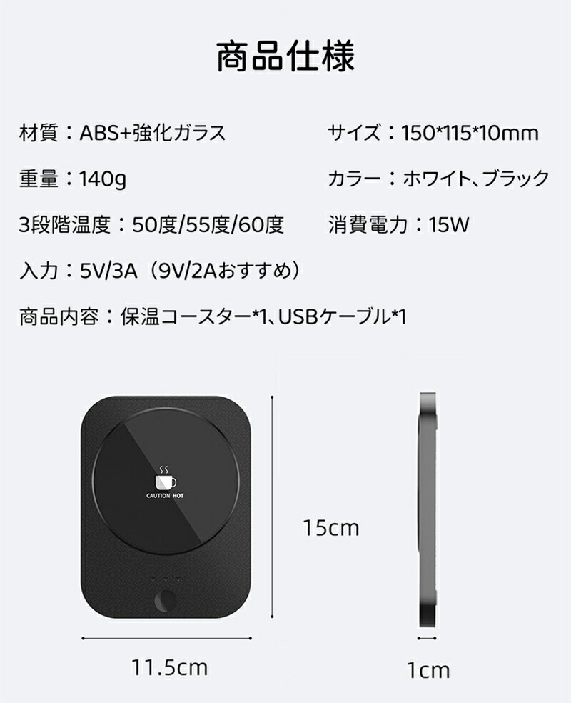 マグカップウォーマー 保温コースター キッチン用品 食器 調理器具 豊富な品揃え ホワイト ブラック