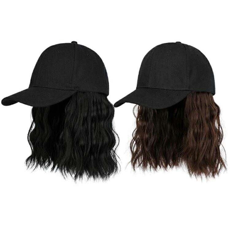 ウェーブ ボブ ウィッグ付きキャップ 帽子 メンズ帽子 キャップ 豊富 ブラック ブラウン ハニーブラウン マットブラウン