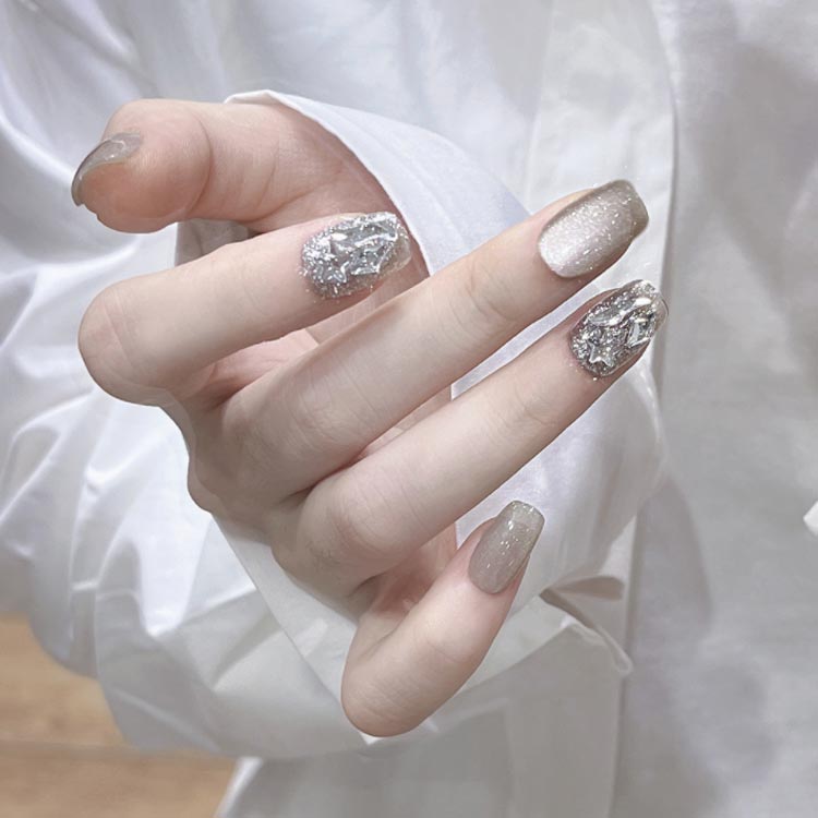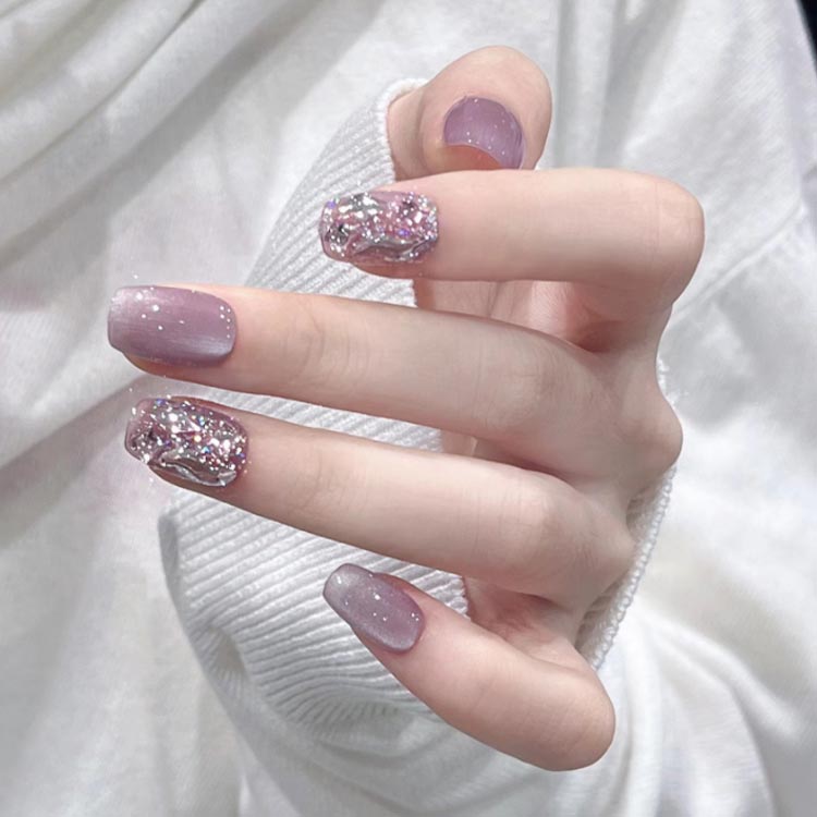 ネイルチップ ネイルシール キラキラ ピンク(ショート) グレー(ショート) ピンクパープル(ショート) シャンパン(ショート) シャンパン(ミディアム)