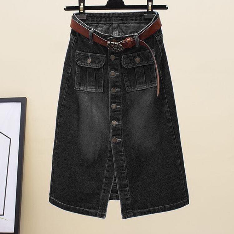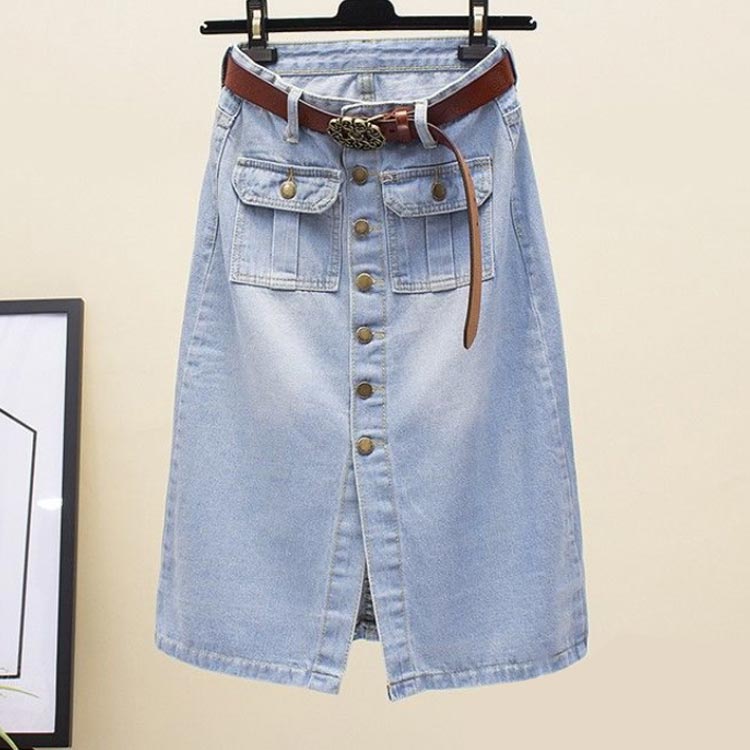 ハイウエスト デニムスカート フロント ボトムス スカート 特集 ダークブルー ライトブルー ブラック XS S M L XL 2XL 3XL 4XL