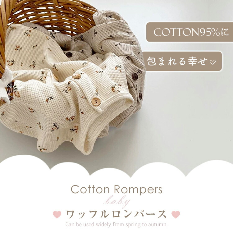 ベビー服 ロンパース かわいい 2点セ キッズ ベビー マタニティ 通販 NO.01アイボリー NO.02アイボリー花柄 NO.03カーキ NO.04カーキ花柄 66cm 73cm 80cm 90cm