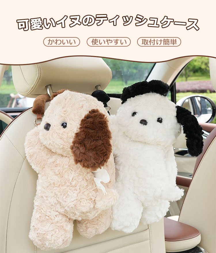 ティッシュケース 吊り下げ 車用 車 ホワイト カーキ グレー キャメル