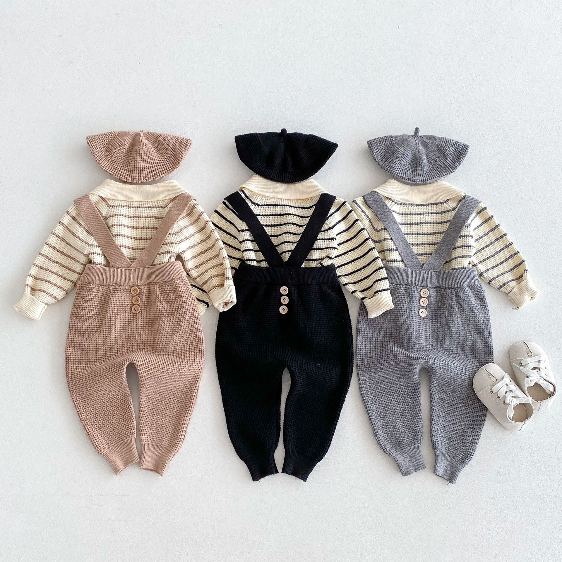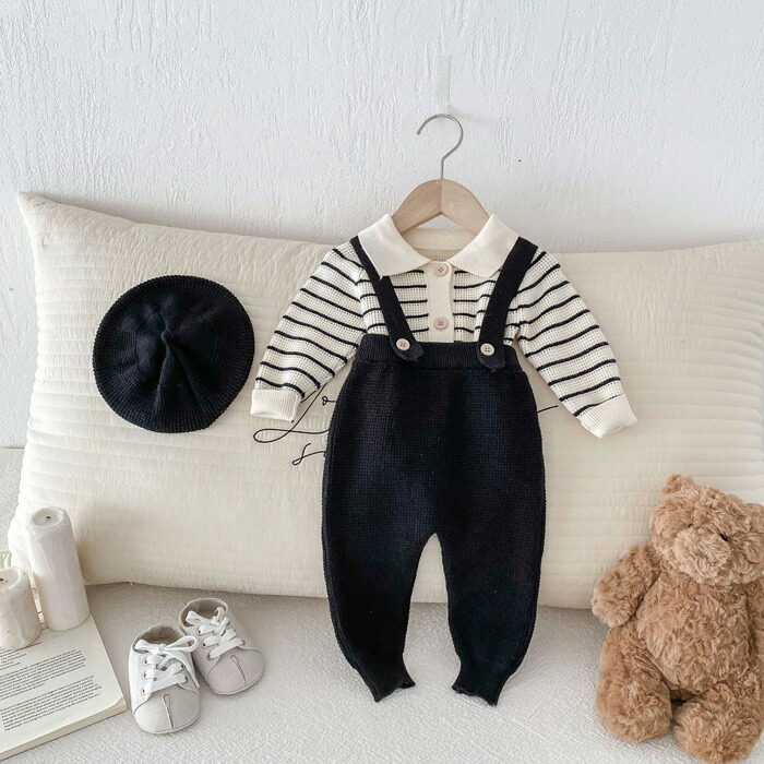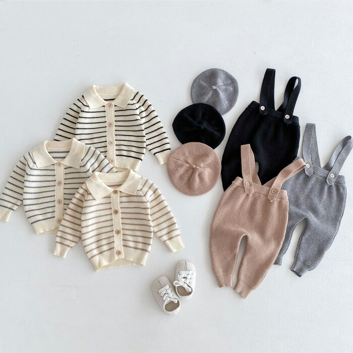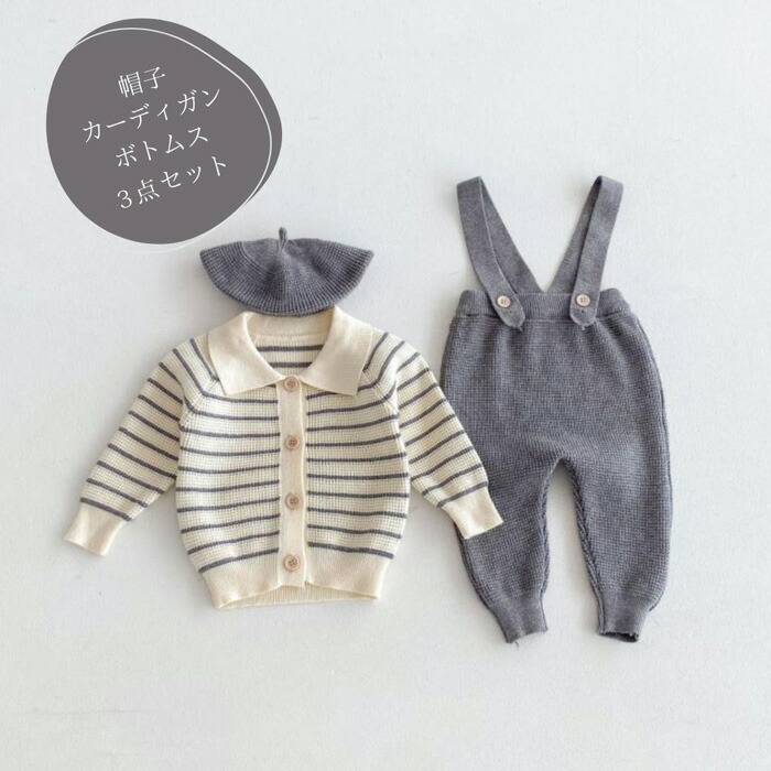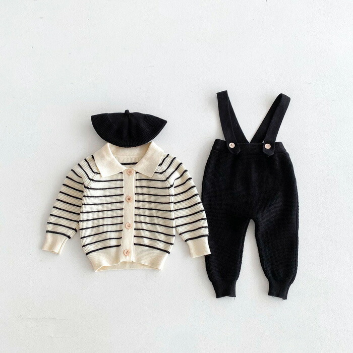 3点セット ニットカーディガン&サロペ キッズ ベビー マタニティ 新作 ブラック グレー ベージュ 66cm 73cm 80cm 90cm