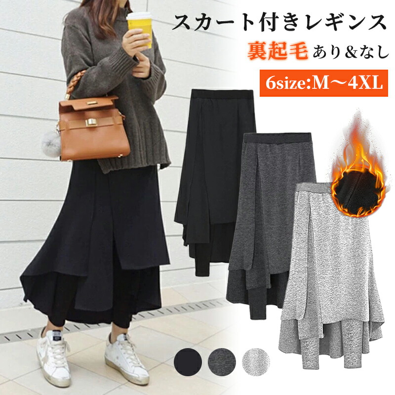 スカート付きレギンス レディース 通勤 レディースファッション 通販 ブラック(薄手) グレー(薄手) ブラック(裏起毛) グレー(裏起毛) ライトグレー(薄手) ライトグレー(裏起毛) M L XL 2XL 3XL 4XL